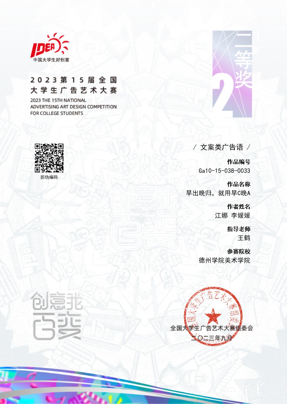 9月6日,第15届全国大学生广告艺术大赛全国总评奖项公布,BBIN宝盈官方网站选送作品最终获国家二等奖1项,三等奖2项,优秀奖1项,获奖层次与数量在省内同类院校中名列前茅。