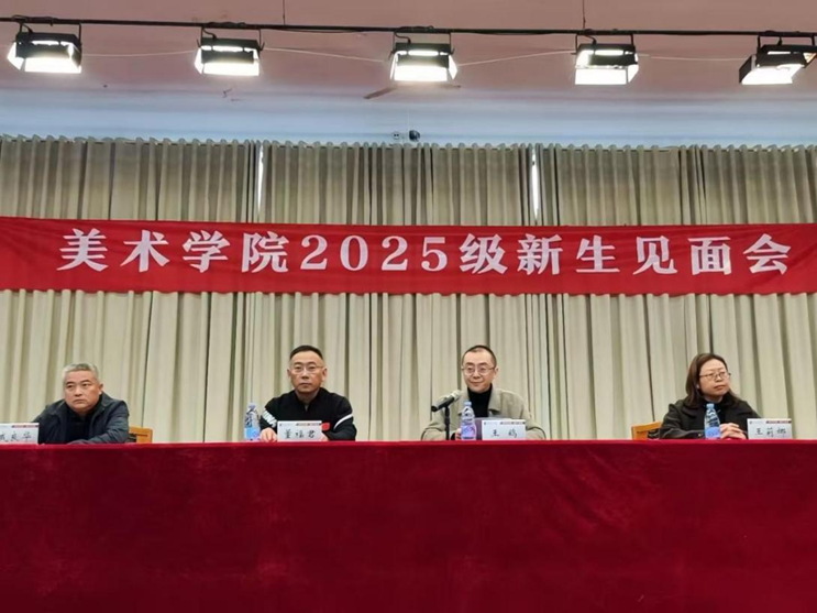 10月31日下午,BBIN宝盈官方网站在求实楼409召开2025级新生见面会。出席本次见面会的有学院党委书记董福君,党委副书记、院长王鹤,党委副书记戚良华,副院长王莉娜,美术系主任李姗姗,党政办公室副主任肖琳琳,教学科研事务办公室主任申晓旭,全体辅导员及2025级全体新生。会议由学院党委副书记戚良华主持。